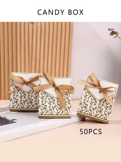 50件婚礼派对糖果盒,可爱糖果礼盒,糕点生日礼盒,派对礼品袋,派对装饰,节日配饰,生日派对用品 - 金色 - 查看 1