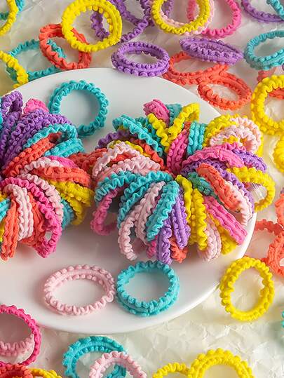 50个/套 男女通用甜美裙边波浪纹发圈弹力橡皮筋,可爱不伤发,休闲马尾辫发圈,发绳,发圈,发饰,头饰,弹力发带 - 彩色 - 查看 1