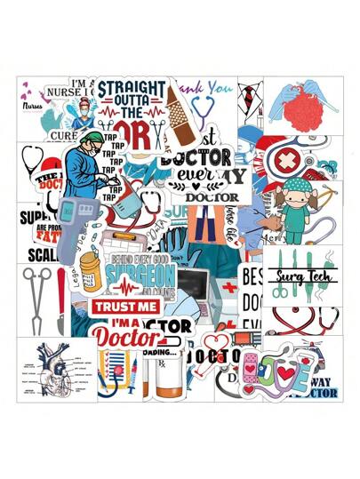 52入組醫療主題貼紙,可愛卡通醫生和護士貼紙,街頭藝術系列貼紙,嘻哈風格貼紙,美學塗鴉乙烯基防水貼紙,適用於水瓶,筆記本電腦,手機,滑板,吉他,行李箱,剪貼簿,安全帽,兒童,青少年和成年人的派對裝飾 - 彩色 - 查看 1