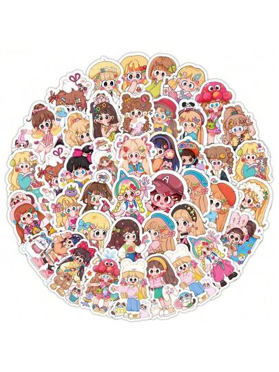53张可爱萌系女孩贴纸套装,卡通人物贴纸,适用于笔记本电脑、水瓶、手机、DIY剪贴簿等。 - 彩色 - 查看 1