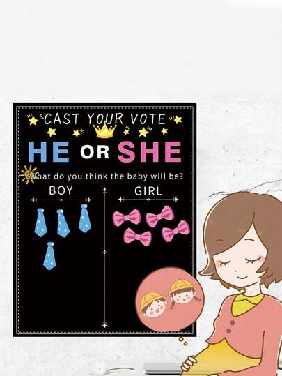 55件/套性别揭晓派对游戏海报,“他或她,投出你的一票”预测板,配有蓝色领带和粉色蝴蝶结贴纸,有趣的互动游戏,适合婴儿派对和怀孕公告。 - 彩色 - 查看 8