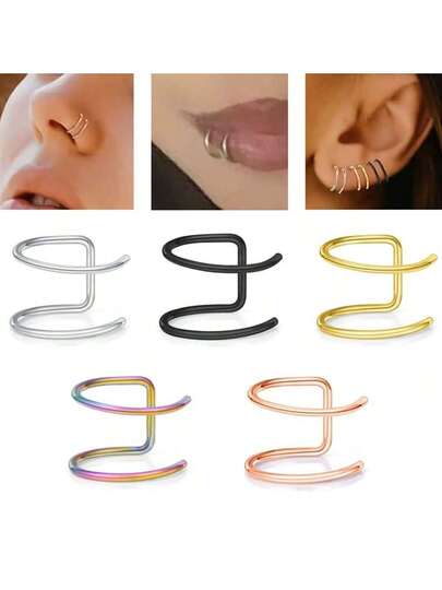 5入組女士假穿孔鼻環唇環耳環不銹鋼非穿刺鼻夾身體鏈 - 彩色 - 查看 5