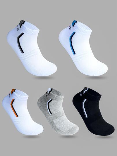 5 双男士字母图案吸汗运动隐形袜子,适合日常生活、健身 - 彩色 - 查看 1