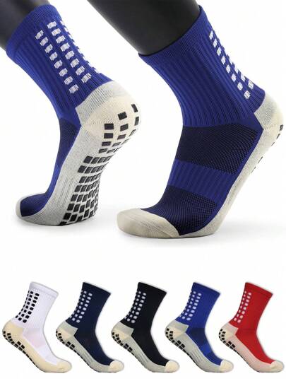 5雙運動保暖厚毛巾底男士中筒足球襪,帶防滑點設計 - 彩色 - 查看 1