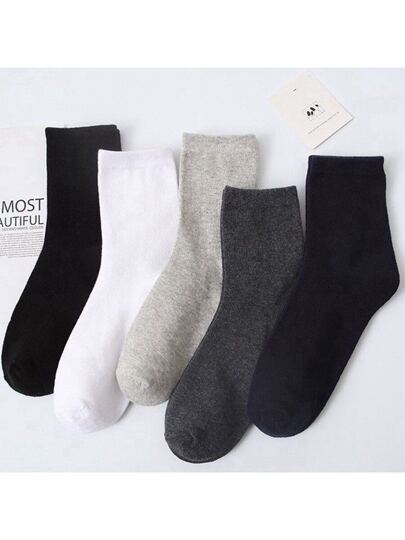 5雙/套男士素色中筒襪大尺碼寬休閒春夏四季運動襪 - 彩色 - 查看 5