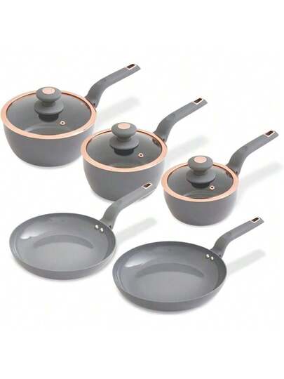 5pc Cookware Set Pot Frying/ Saucepans Non-Stick Black - 預設 - 查看 1