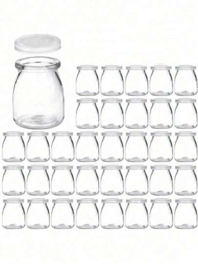 5个100毫升可重复使用透明玻璃罐,带PE盖,耐热布丁杯、酸奶瓶、慕斯杯、幸运星玻璃罐、迷你许愿玻璃瓶、浴盐容器、面膜罐、储物瓶