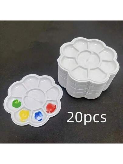 5 件/10 件/20 件迷你花形塑料调色板 - 水彩和水粉画艺术混合托盘 - 白色 - 查看 1