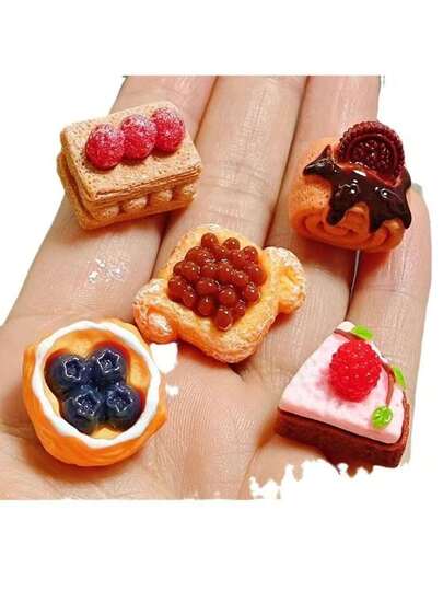 5件/10件迷你DIY模拟食物玩娃娃屋微型蛋糕装饰、树脂配件、面包卷、场景布置 - 彩色 - 查看 5
