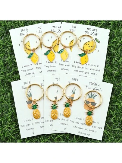 5件套可爱个性化柠檬菠萝草莓香蕉钥匙扣套装,带卡片口袋,送给家人和朋友——一份提醒您坚强和韧性的小礼物,可作包包挂饰、汽车配件、教师礼物、姐妹礼物等。 - 黃色 - 查看 10