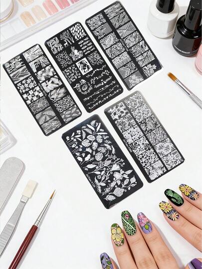 5件套花卉叶子图案美甲印花板美甲工具