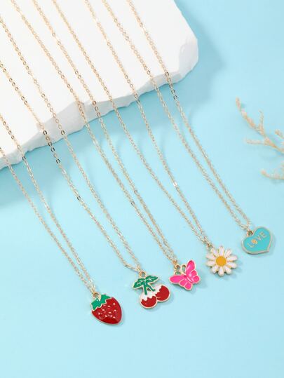 5入組女孩花朵掛飾項鍊 - 彩色 - 查看 5