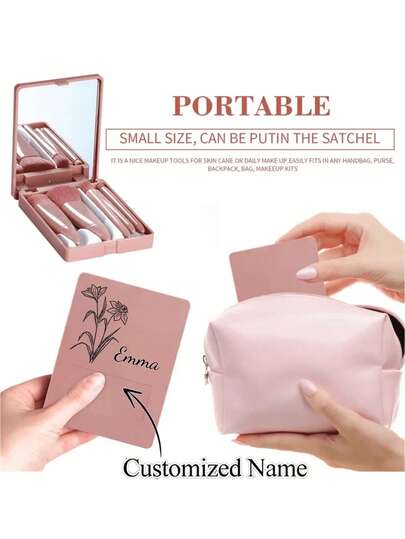 5 件套迷你化妆刷套装带镜子 - 便携式旅行套装,适用于粉底、眼影、口红混合和粉末 - 均碼 - 查看 1