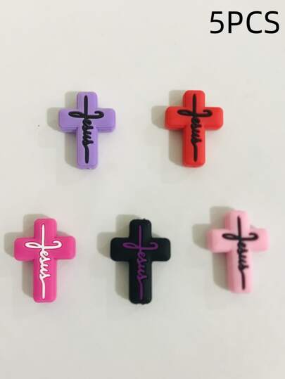 5入組新創意diy矽膠珠子,隨附十字架吊墜,適用於手環珠寶製作 - 彩色 - 查看 5