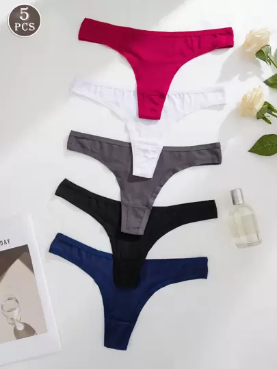 5 件/包舒适贴身女式丁字裤,柔软内衣适合运动和日常使用,多件装 S-XL 码,适合所有季节 - 彩色 - 查看 1