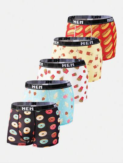 5 条装 男士卡通食物印花平角内裤(带腰带) - 彩色 - 查看 5