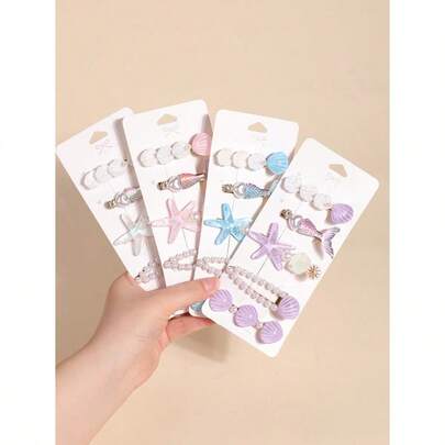 5pcs/Pack Mermaid Shell Hair Clips, Cute Kawaii Lovely Girls Side Crab Clips, Korean Fashion Bangs Hair Accessories