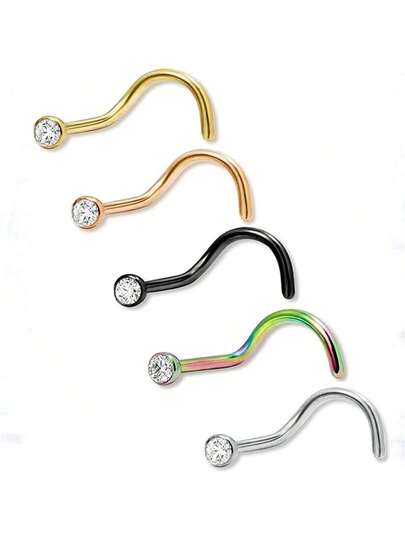 5 件个性化不锈钢和水钻鼻钉,带字母“5”,适合情侣日常佩戴 - 0.8mm*6mm*2mm - 查看 5