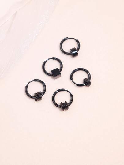 5 件套黑色韩式吊坠耳环,简约时尚,适合日常佩戴、派对,不锈钢耳环