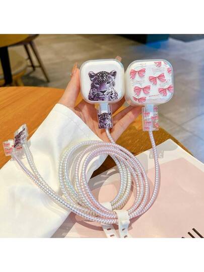 5个/套蝴蝶结/豹纹保护套,适用于英标20W充电器适配器,线缆整理器,数据线绕线器 - 彩色 - 查看 6