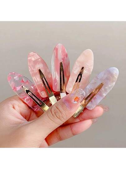 5件套时尚优雅樱花粉色亚克力无缝发夹,可爱刘海发夹,甜美发饰 - 彩色 - 查看 5