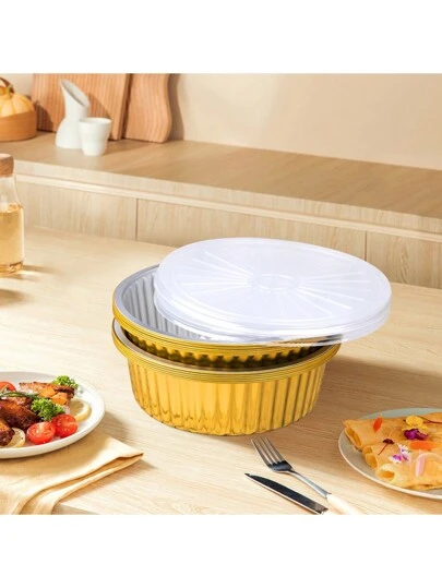 5 件套金色铝箔烤盘 2 个,圆形,可重复使用食品容器,不同容量(4000 毫升、5000 毫升),有盖或无盖,适用于烹饪、加热、储存、烘焙、备餐、烘焙工具 - 金色 - 查看 10