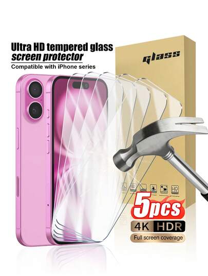 5片装钢化玻璃屏幕保护膜,高清,兼容 17 Pro Max/17 Pro/17 Air/17/16 Pro Max/16 Pro/16 Plus/16/15 Pro Max/15 Pro/15 Plus/15/14/13/12及其他型号 - 無色 - 查看 5