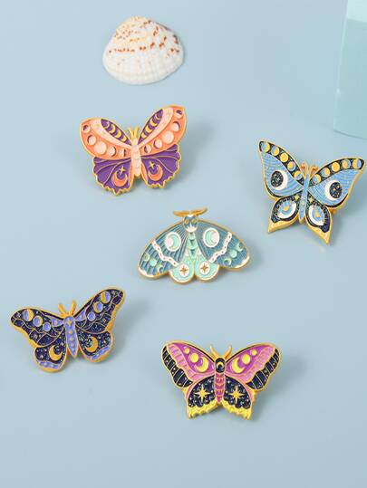 5入組魔女蝴蝶搪瓷別針,客製化月相飛蛾胸針,袍克哥復古昆蟲飾品,友情禮物 - 彩色 - 查看 5