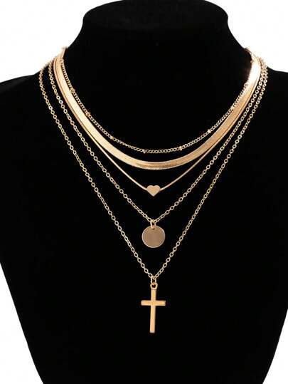 5 件/組時尚百搭 Ins 蛇骨鏈心形與吊墜項鍊 - 金黃色 - 查看 1
