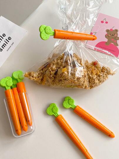 5入組/套塑料食品密封夾創意胡蘿蔔設計家用袋夾 - 橘色 - 查看 5