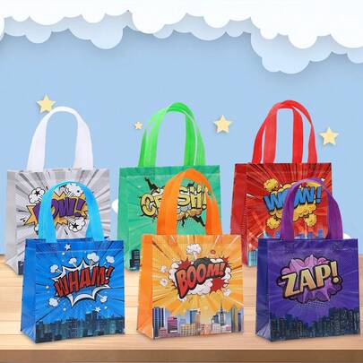 6/12/24个装 20*20*9厘米 可重复使用无纺布礼品袋,超级城市英雄系列印花图案,适用于生日派对、展览购物、派对用品、课堂派对、生日、春季装饰、小礼品包装