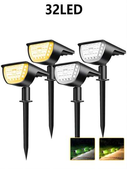 6/4/2/1入組太陽能景觀32LED聚光燈,3種模式防水室外太陽能景觀聚光燈,適用於露台、花園、車道、門廊、人行道、游泳池、假日和聖誕裝飾 - 白色 - 查看 6