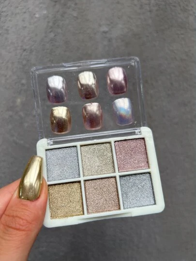 每盒6種顏色指甲藝術魔鏡,全息指甲閃粉,具有玻璃效果,適用於專業沙龍和家居diy