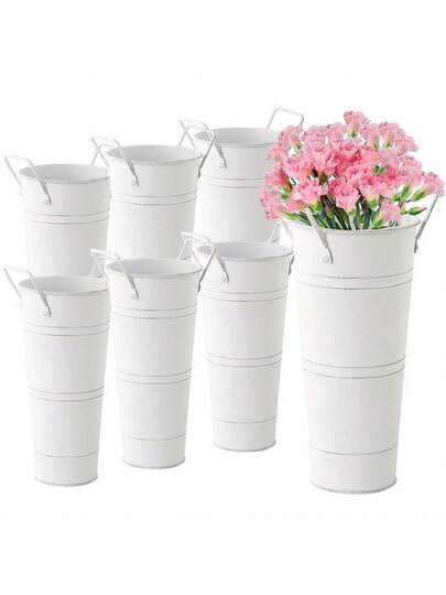 6 Pack Retro Flower Buckets With 1 Flower Scissor For Cut Flowers, For Home Decor And Wedding Table Centerpiece Decorations