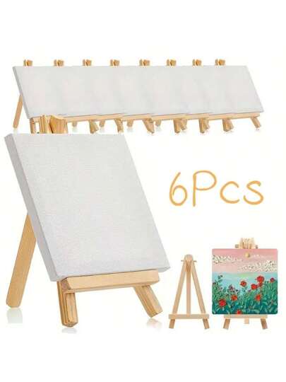 6 件装木制帆布画架艺术画板画框,适合返校DIY绘画 - 彩色 - 查看 6