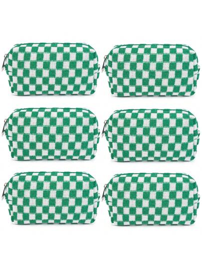 6 Pcs Makeup Bag Set With Checkered Pattern, Portable Travel Cosmetic Organizer Bulk Gift For Women Bridesmaid Party Favor