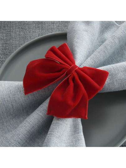 6-Piece Set – Christmas Bow Napkins – Flannel Hoops – Festive Napkin Buckles – Red – Napkin Rings - 紅色 - 查看 6