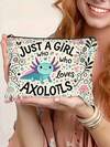 带有墨西哥钝口螈和花卉图案的双面化妆包、旅行洗漱用品收纳包、家用钱包铅笔袋、学校学生收纳包文具袋、教师组织者礼物印花收纳包、小女孩最喜欢的旅行包、送给朋友和家人的礼物、女士和小女孩返校化妆品和学校用品收纳包、旅行杂物收纳包、硬币和化妆品眼镜收纳包