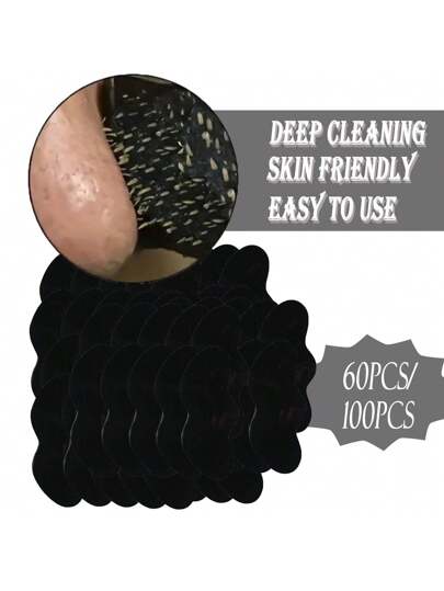60/100 片黑头去除鼻贴深层清洁鼻贴,鼻斑面部点贴纸鼻膜,清新肌肤,瞬间疏通毛孔 - 黑色 - 查看 1