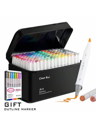 60/80/120/168 色双头画笔和凿子专业艺术马克笔素描笔永久性马克笔带底座和轮廓标记绘图用品套装非常适合成人艺术家着色素描插图和卡片制作圣诞节新年返校礼物 - 可再填充 - 套裝 - 查看 1