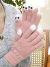 新款女士触屏针织手套,可爱卡通设计,书写、打电话时保暖,秋冬百搭