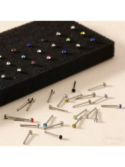 60颗/套 简约轻盈奢华鼻钉,日常休闲佩戴 - 彩色 - 查看 1