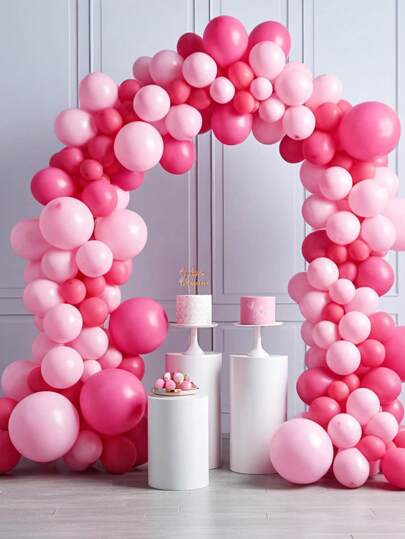 64/126 个粉色红色玫瑰红色乳胶气球套装,生日派对,节日气球,圣诞节,可爱气球,室内装饰气球,气球花环套件 - 彩色 - 查看 4