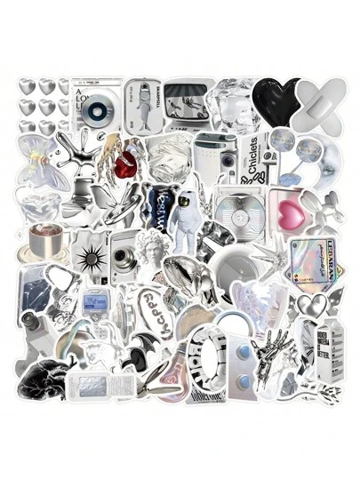 66张极简科技风银色涂鸦贴纸,可爱美学涂鸦贴纸,适用于水瓶、笔记本电脑、手机、滑板、吉他、行李箱、剪贴簿、头盔、自行车、摩托车、汽车、派对装饰 - 黃色 - 查看 1