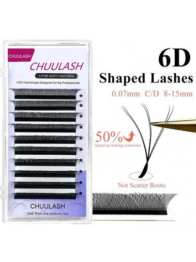 6d W型花朵綻放預製捲翹卷簇,自動成扇形狀,自然柔軟輕盈的假睫毛,化妝必備 - C - 查看 6