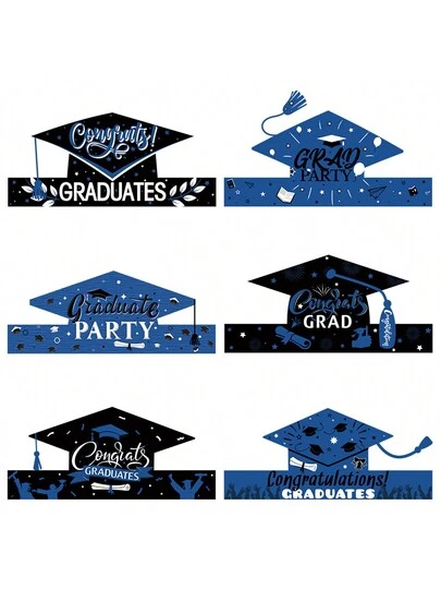 6入組畢業紙質帽子,「祝賀畢業」主題畢業派對裝飾用品2024,畢業派對禮品 - 藍色 - 查看 4
