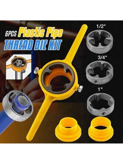 6入組鋼塑管紅花板牙套裝,附龍鉗扳手套裝-黃色,易於使用的PVC管道工具,無需充電,需要組裝,不含電池 - 黃色 - 查看 6
