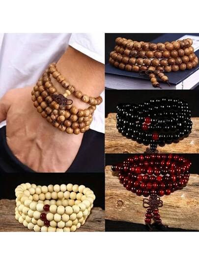 6 毫米/8 毫米檀香木和黑檀木佛珠念珠手链,适合男士,父亲节礼物 - 如圖 - 查看 11