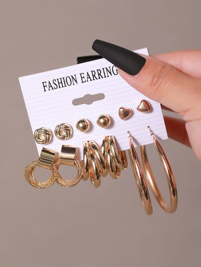 6對愛心裝飾耳環 - 彩色 - 查看 1