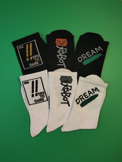 6雙男士字母圖案中筒襪 - 彩色 - 查看 1